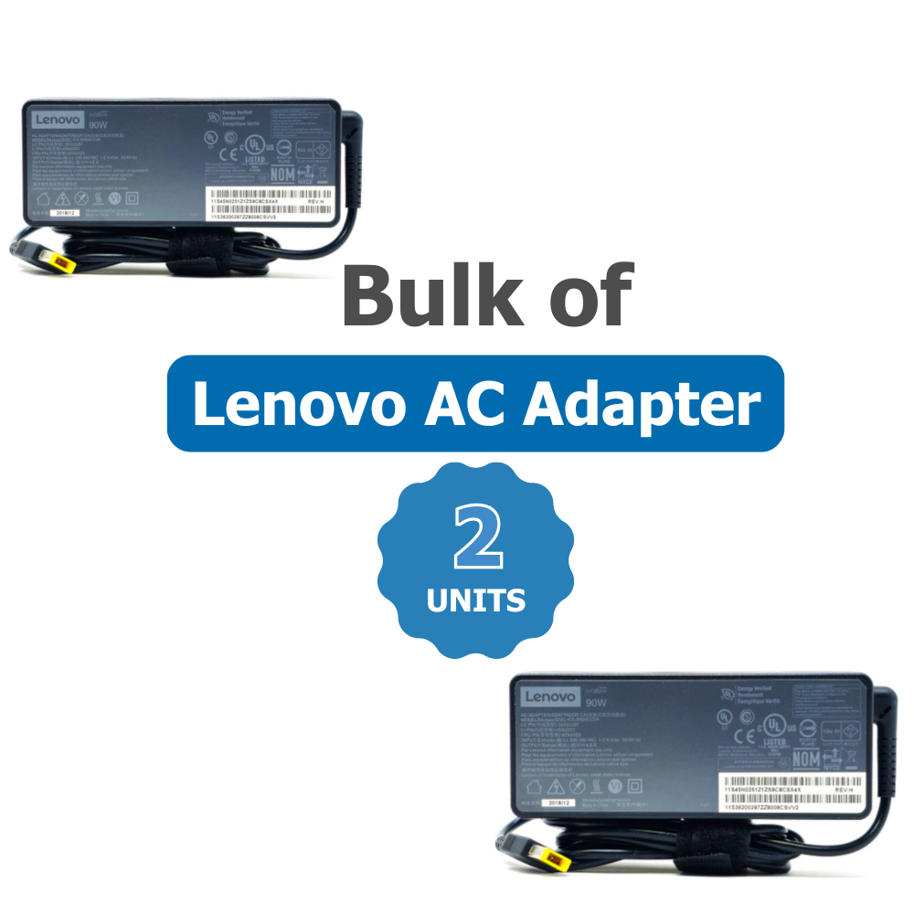 Bulk of 2x Genuine Lenovo Laptop Charger 90W 20V (4.5A) Square Tip AC Adapter - For ThinkPad