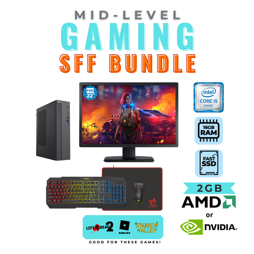Mid-Level Gaming SFF PC Bundle Intel i5 CPU 16GB 128GB SSD 2GB Graphics + 22" Monitor