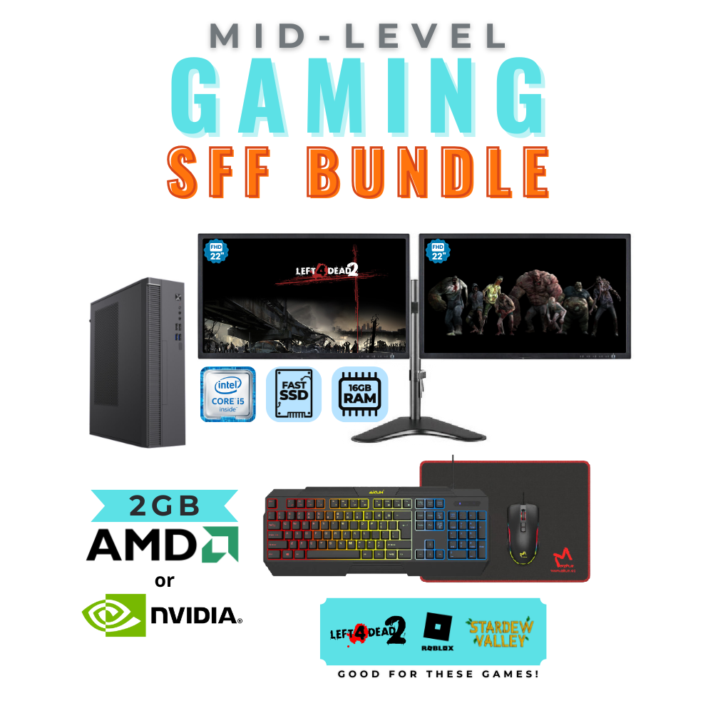 Mid-Level Gaming PC Bundle Intel i5 CPU 16GB 128GB SSD 2GB Graphics + Dual 22" Monitor