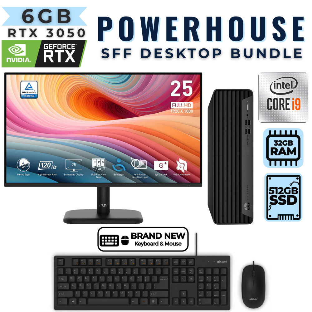 HP EliteDesk 800 G8 SFF Desktop Bundle i9-11900 512GB 32GB RAM RTX 3050+NEW 24" 120Hz MSI Monitor