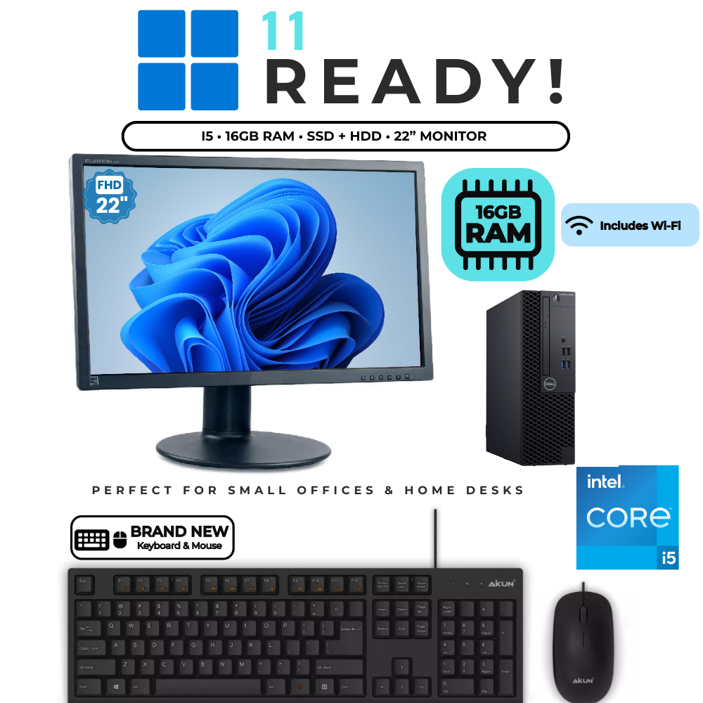 Dell 3060 SFF Desktop Bundle i5-8500 6-Cores 3.0GHz 256GB SSD 16GB RAM + 22" Monitor
