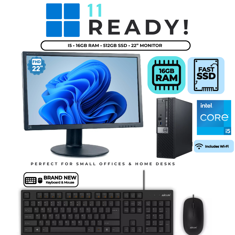 Dell 7070 SFF Desktop i5-9500 6-cores 512GB 16GB RAM Windows 11 + 22" Monitor