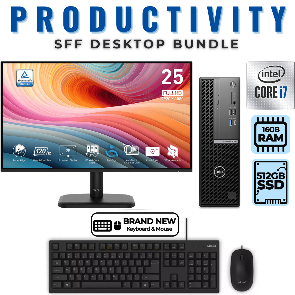 Dell Optiplex 7000 SFF Desktop Bundle i7-12700 512GB 16GB RAM +NEW 24" 120Hz MSI Monitor