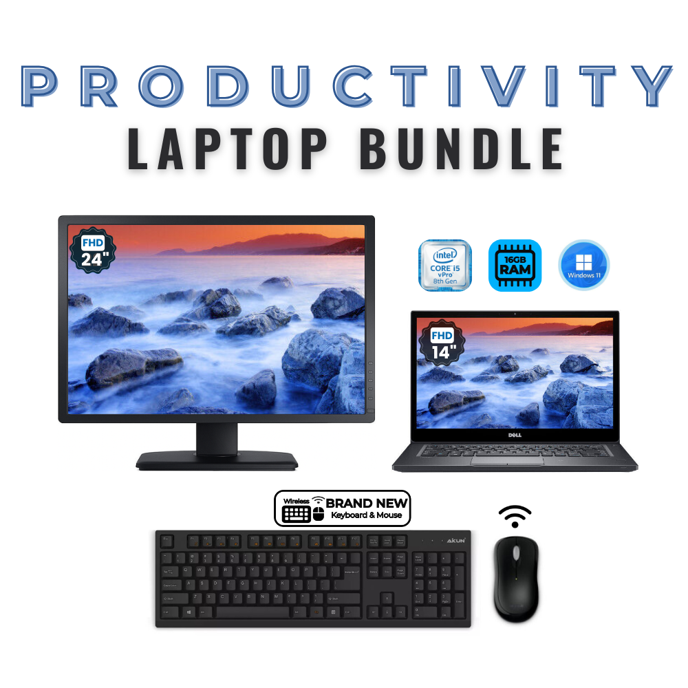 Dell Latitude 7480 FHD 14" Laptop Bundle i7-6600U 256GB 16GB RAM + 24" Monitor