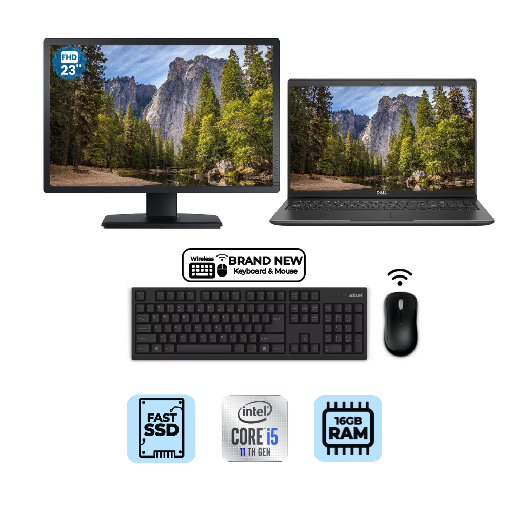 Dell Latitude 3520 15" FHD Laptop Bundle i5-1135G7 256GB 16GB RAM + 23" Monitor