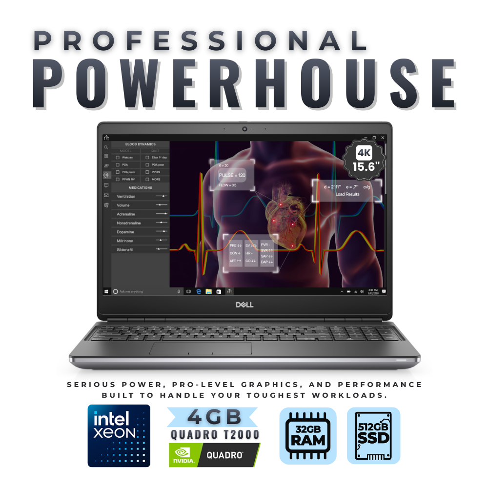 Dell Precision 7550 15" Laptop Xeon W-10855M 6-Cores 32GB RAM 4GB Quadro T2000 - Windows 11 Mobile Workstation