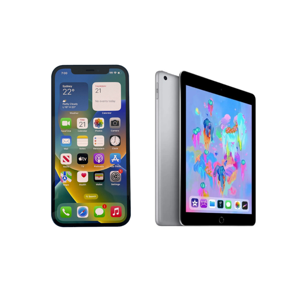 Apple iPhone 12 128GB Black + iPad 6th Gen 32GB Grey WiFi Cellular - Bundle Package!