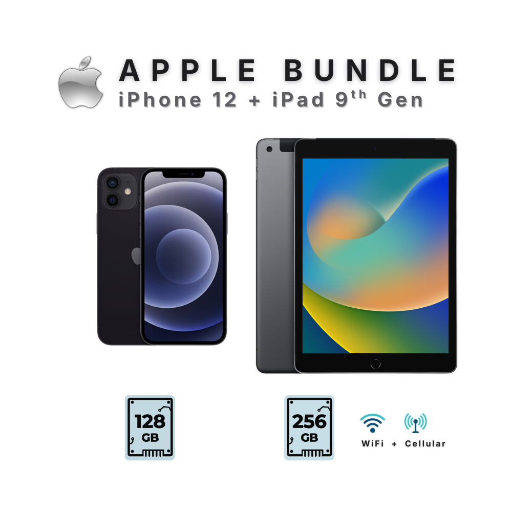 Apple iPhone 12 128GB Black + iPad 9th Gen 256GB Grey WiFi Cellular - Bundle Package!