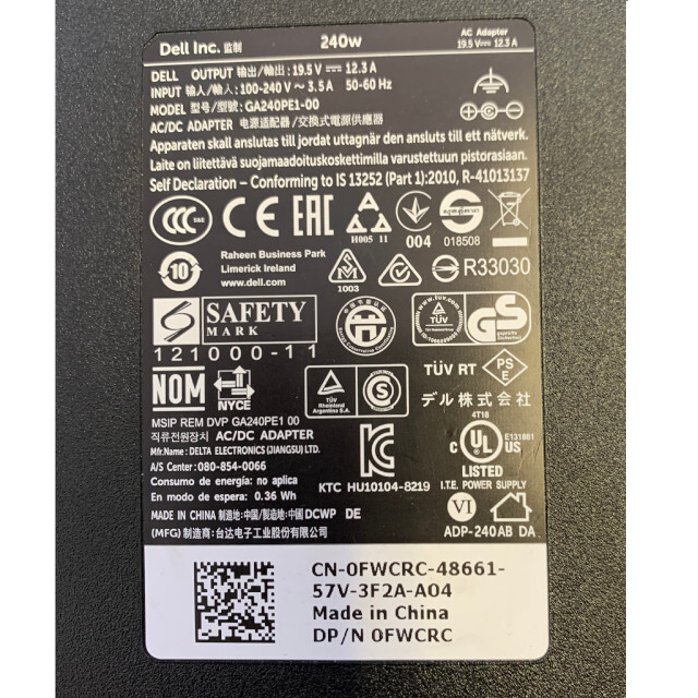 Bulk of 2x Genuine Dell 240W Laptop Charger 19.5V (12.3A) 7.4 x 5.0mm Adapter For Precision, Alienware, Inspiron